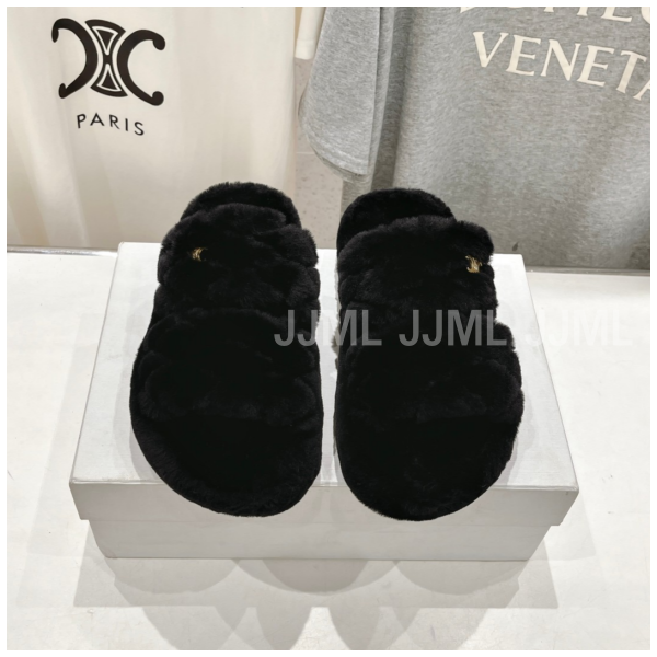 셀린느 투 스트랩 퍼 슬라이드 블랙
