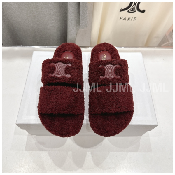 셀린느 투 스트랩 시어링 슬라이드 버건디