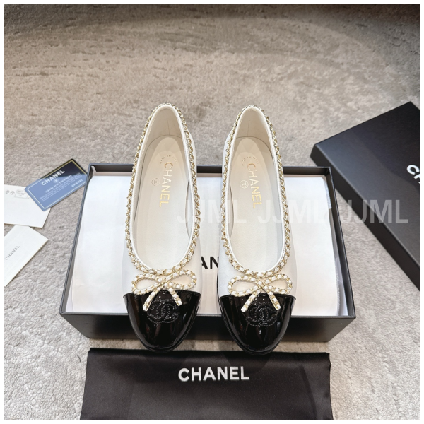 샤넬 투톤 리본 발레리나 플랫 슈즈 쟈카드