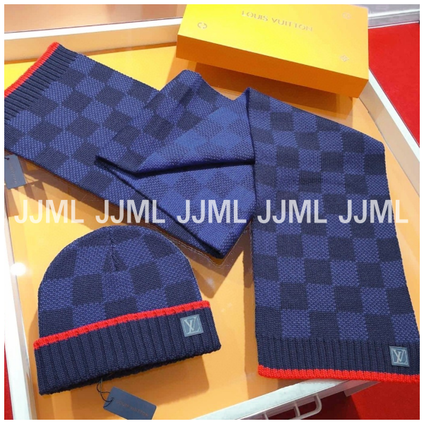 루이비통 체크 머플러 & 비니 레드 > 머플러