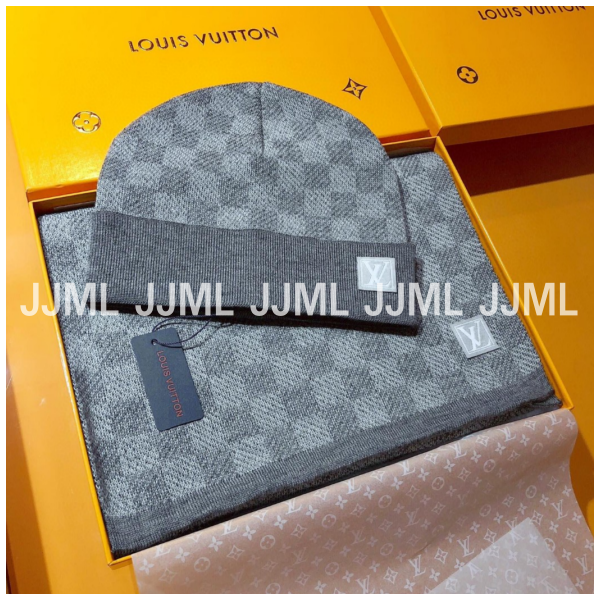 루이비통 체크 머플러 & 비니 그레이 > 머플러