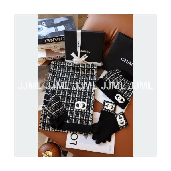 샤넬 머플러 비니 글러브 세트 블랙 > 머플러