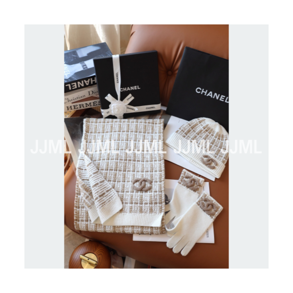 샤넬 머플러 비니 글러브 세트 베이지 > 머플러