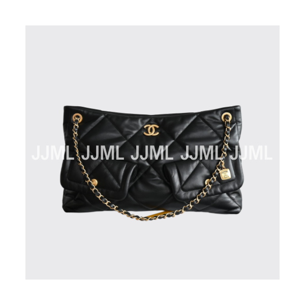 샤넬 쇼핑백 샤이니 램스킨 골드메탈 블랙 > 샤넬