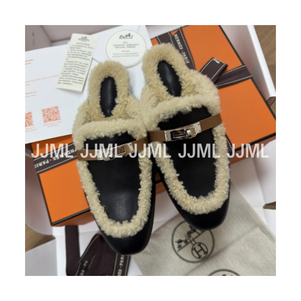 에르메스 Kelly 시어링 뮬 블랙 > 에르메스