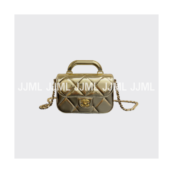 샤넬 미니 플랩백 메탈릭 미러 골드 톤 메탈 하드웨어 > 샤넬