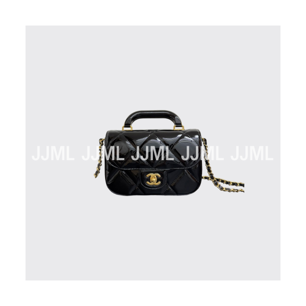 샤넬 미니 플랩백 메탈릭 미러 골드 톤 메탈 블랙 > 샤넬