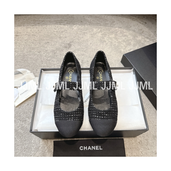 샤넬 턴락 메리제인 플랫 슈즈 블랙 트위드 > 샤넬