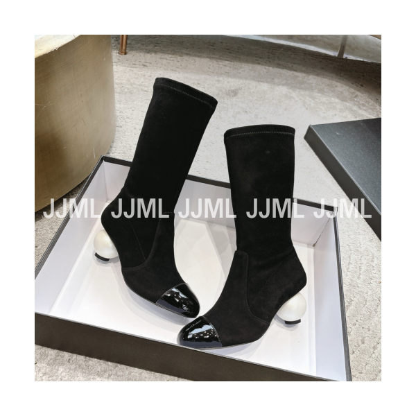 샤넬 하이부츠 진주굽 블랙 스웨이드 > 샤넬