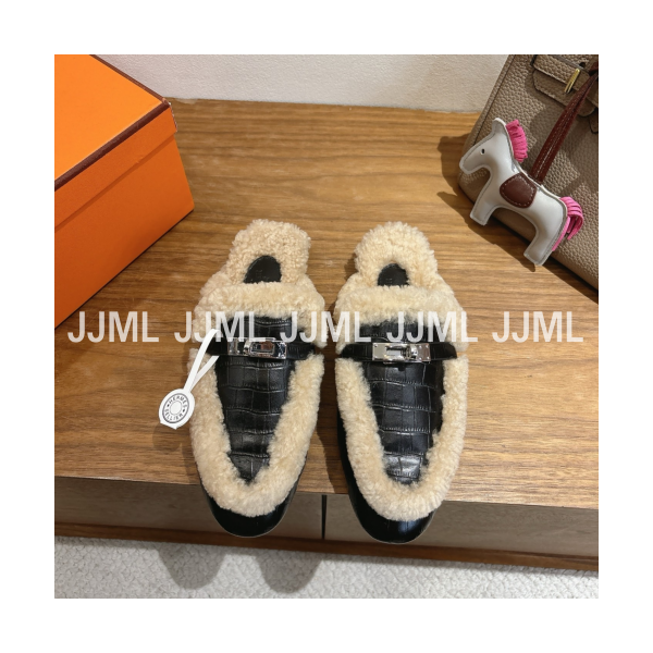 에르메스 25FW 오즈 시어링 뮬샌들 화이트