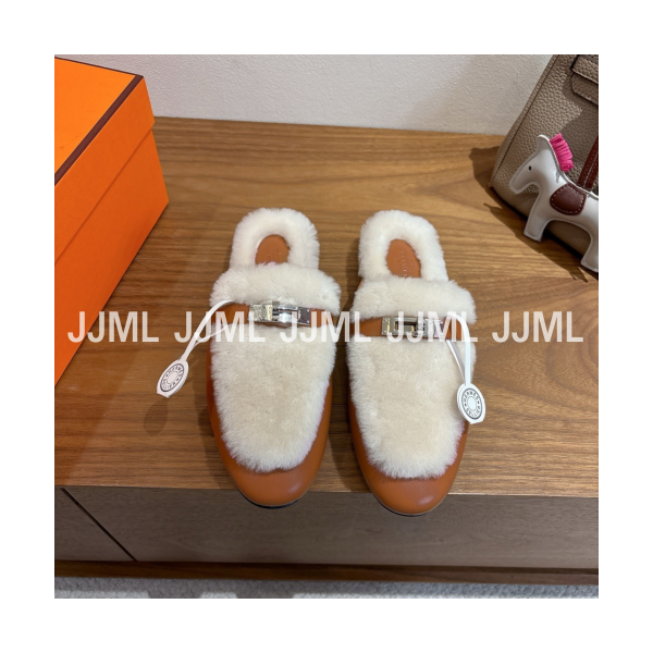 에르메스 25FW 오즈 시어링 뮬샌들 브라운