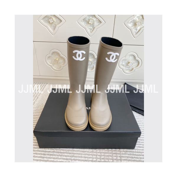 샤넬 CC 로고 레인부츠 그레이