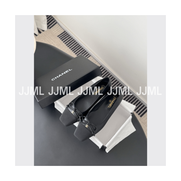 샤넬 클래식 발레리나 그로그랭 토 캡 플랫 슈즈 블랙