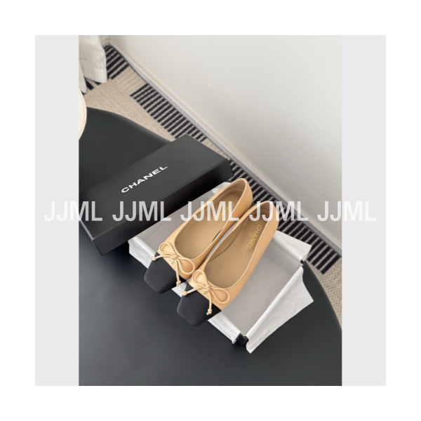 샤넬 클래식 발레리나 그로그랭 토 캡 플랫 슈즈 베이지 블랙