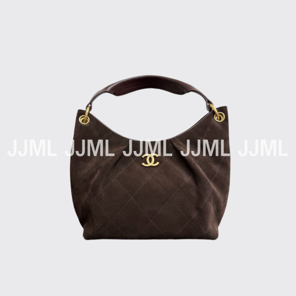 샤넬 스웨이드 다크 브라운 맥시 호보백 > 샤넬