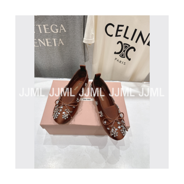 미우미우 새틴 크리스탈 발레리나 플랫 브라운 > 미우미우