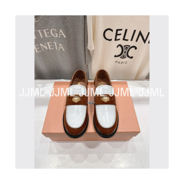 미우미우 페니 로퍼 레더 투톤 브라운&화이트
