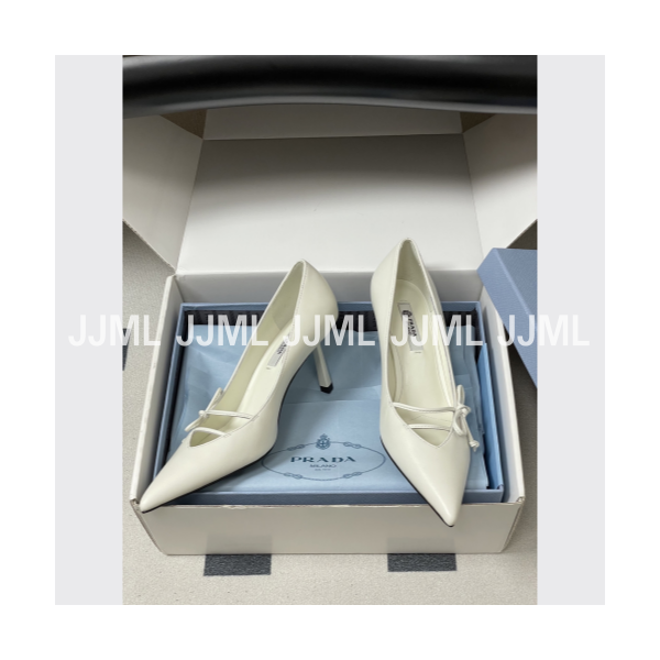 프라다 리본 스트랩 레더 펌프스 화이트 > 프라다