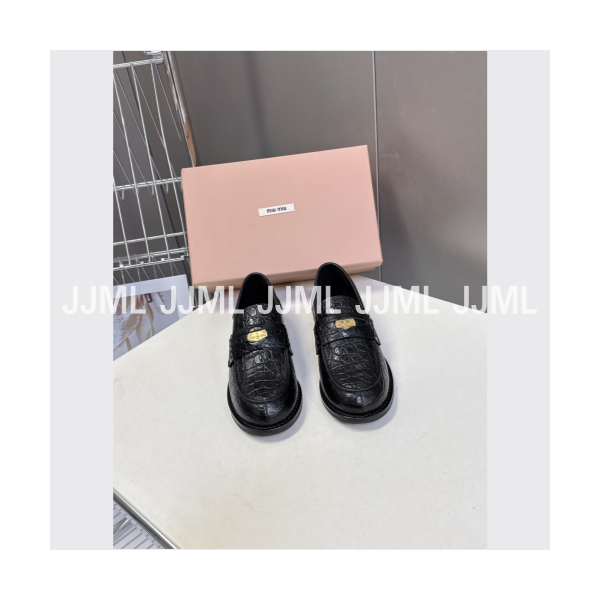 미우미우 크로코 프린트 레더 페니로퍼 블랙