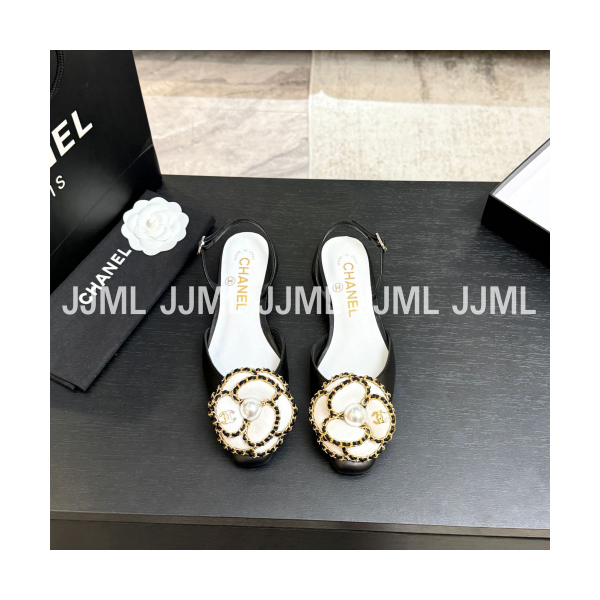 샤넬 까멜리아 슬링백 플랫 슈즈 블랙 > 샤넬