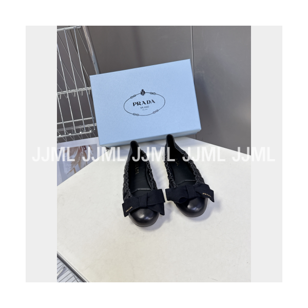 프라다 가죽 스크런치 리본 플랫 블랙 글로시
