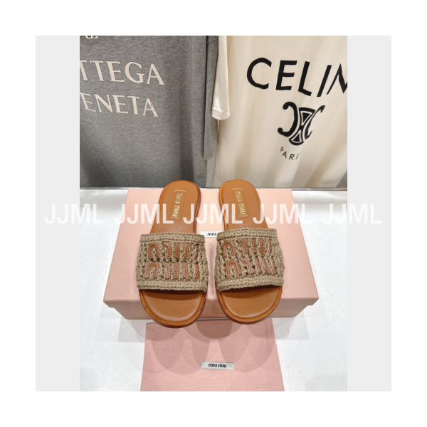 미우미우 라피아 슬라이드 샌들 브라운 > 미우미우