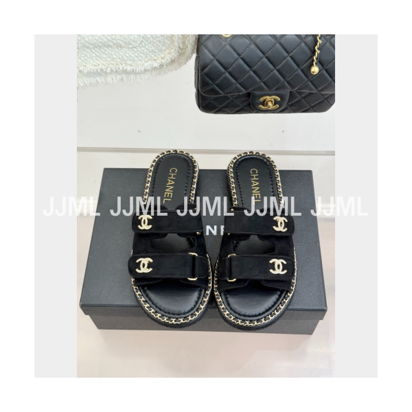 샤넬 벨크로 슬라이드 샌들 스웨이드 블랙