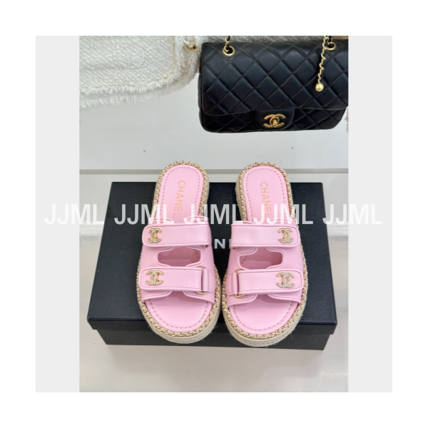 샤넬 벨크로 슬라이드 샌들 핑크