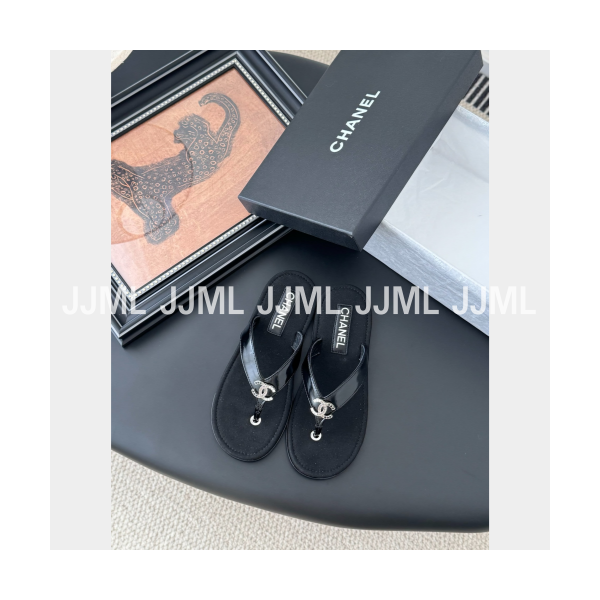 샤넬 로고 플립플랍 슬리퍼 블랙