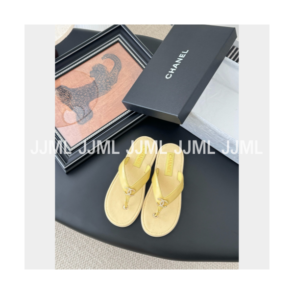 샤넬 로고 플립플랍 슬리퍼 버터