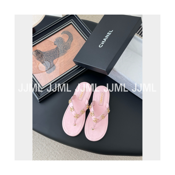 샤넬 로고 참 패턴 플립플랍 슬리퍼 핑크