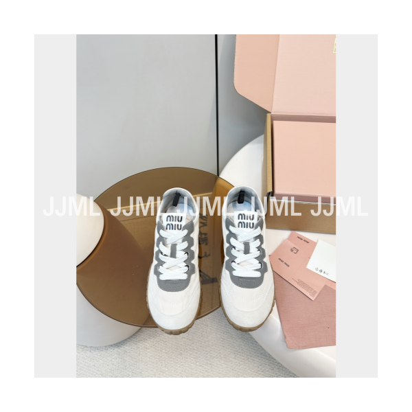 미우미우 타이어 테크니컬 패브릭 스니커즈 아이보리 그레이