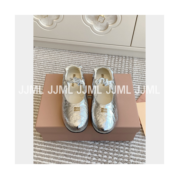 미우미우 루시드 나파 가죽 발레리나 슈즈 실버