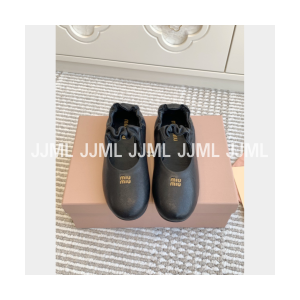 미우미우 루시드 나파 가죽 발레리나 슈즈 블랙