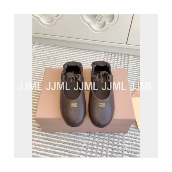 미우미우 루시드 나파 가죽 발레리나 슈즈 브라운