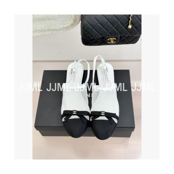 샤넬 컬러 콤비 슬링백 펌프스 화이트