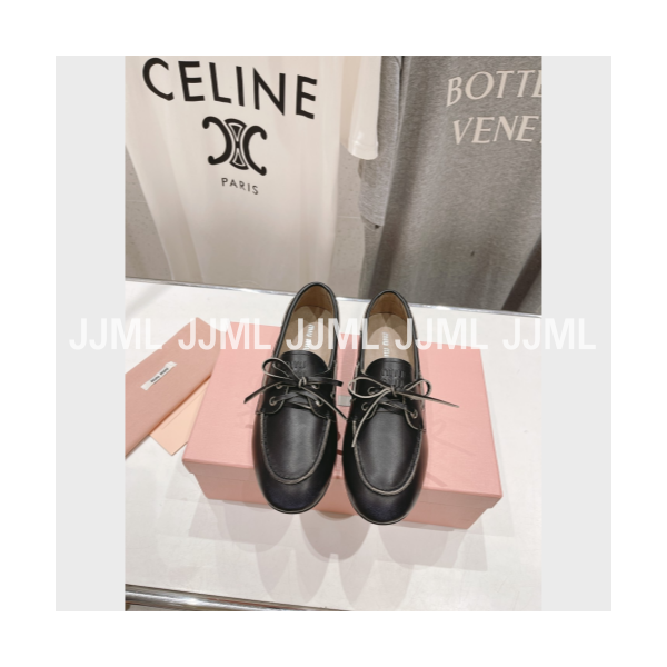 미우미우 블리치드 가죽 보트 슈즈 블랙