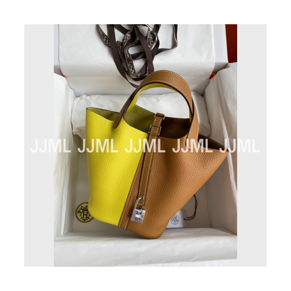 에르메스 피코탄 락 18 투톤백 네온 크림 골드 > 에르메스