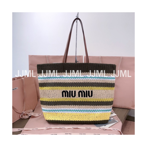 미우미우 스트라이프 크로셰 토트백 카키 레몬 5BG228 요약정보 및 구매
