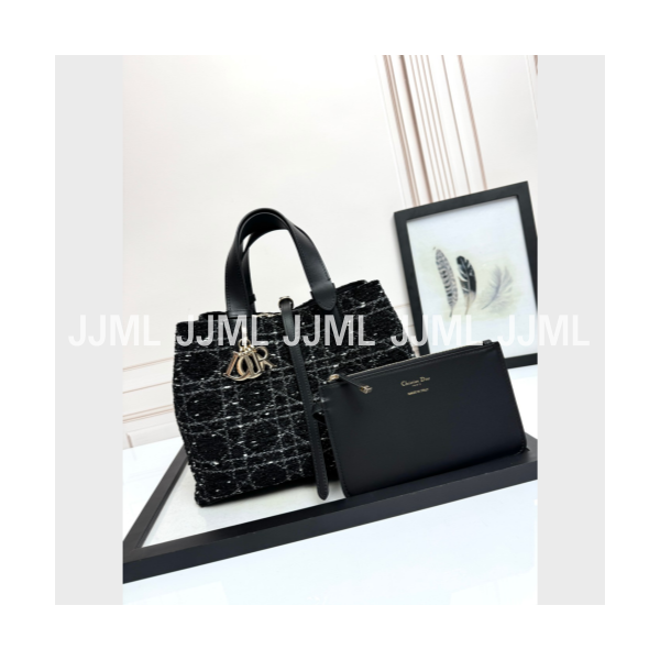 디올 뚜쥬르 미디엄 버티컬 도트백 블랙 > 디올