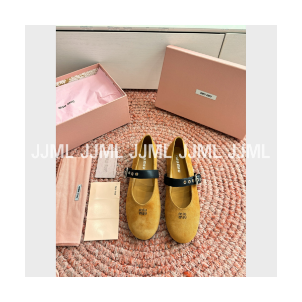 미우미우 스웨이드 발레리나 슈즈 꼬냑