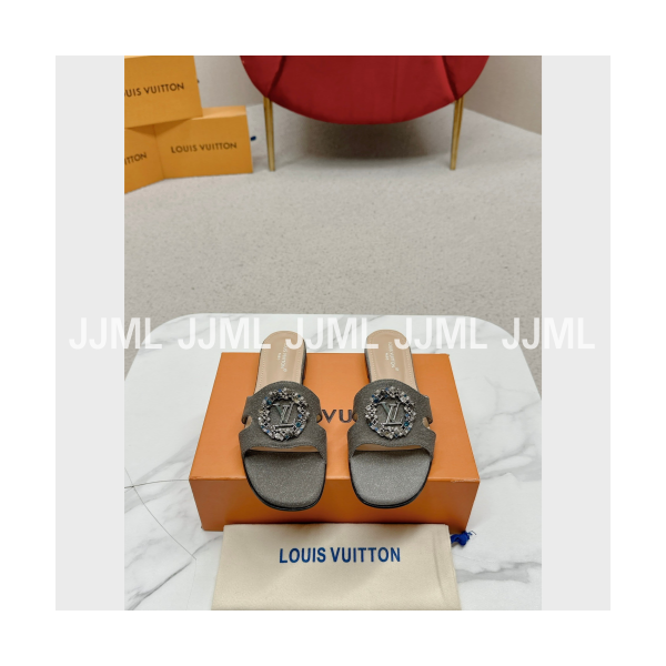루이비통 장식 로고 샌들 뮬 펄 챠콜