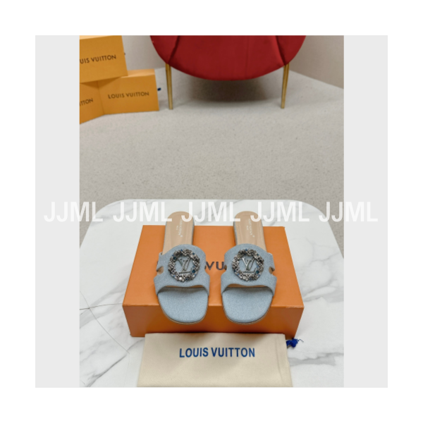 루이비통 장식 로고 샌들 뮬 펄 스카이블루 > 루이비통