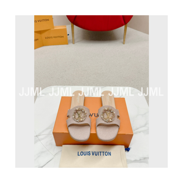 루이비통 장식 로고 샌들 뮬 펄 베이지핑크 > 루이비통