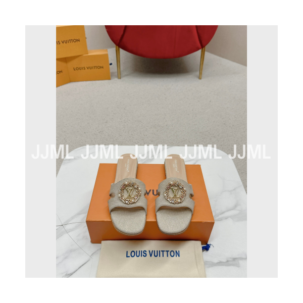 루이비통 장식 로고 샌들 뮬 펄 베이지 > 루이비통