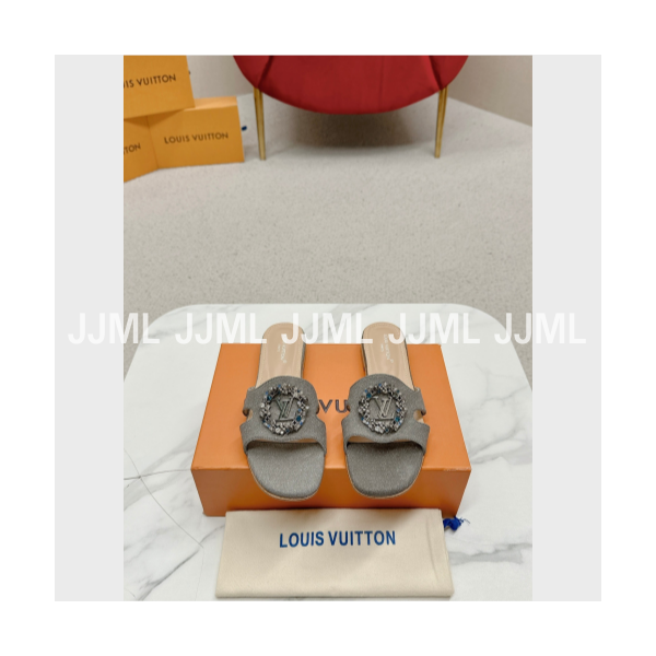 루이비통 장식 로고 샌들 뮬 펄 그레이 > 루이비통
