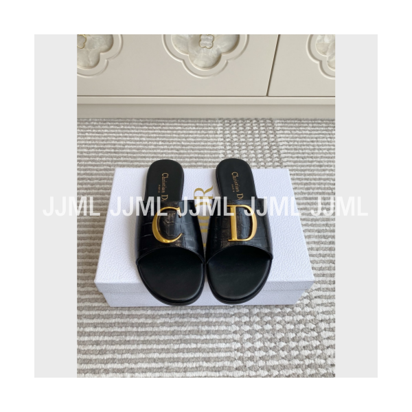디올 이니셜 로고 슬라이드 블랙 크로커다일