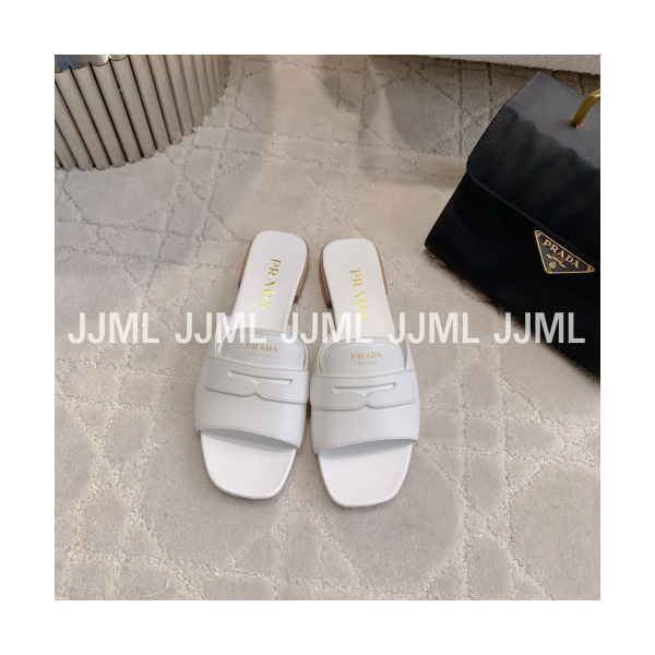 프라다 로고 스탬프 레더 샌들 아이보리 > 프라다