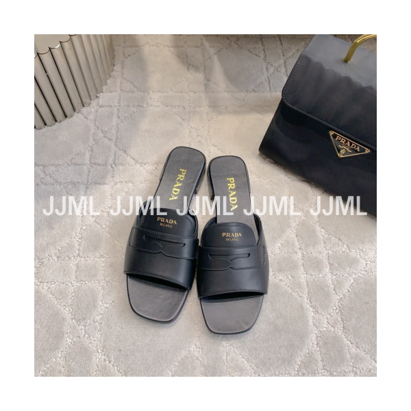 프라다 로고 스탬프 레더 샌들 블랙