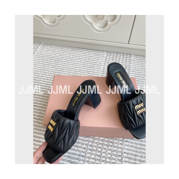 미우미우 마테라쎄 나파 레더 뮬 샌들 블랙 > 미우미우